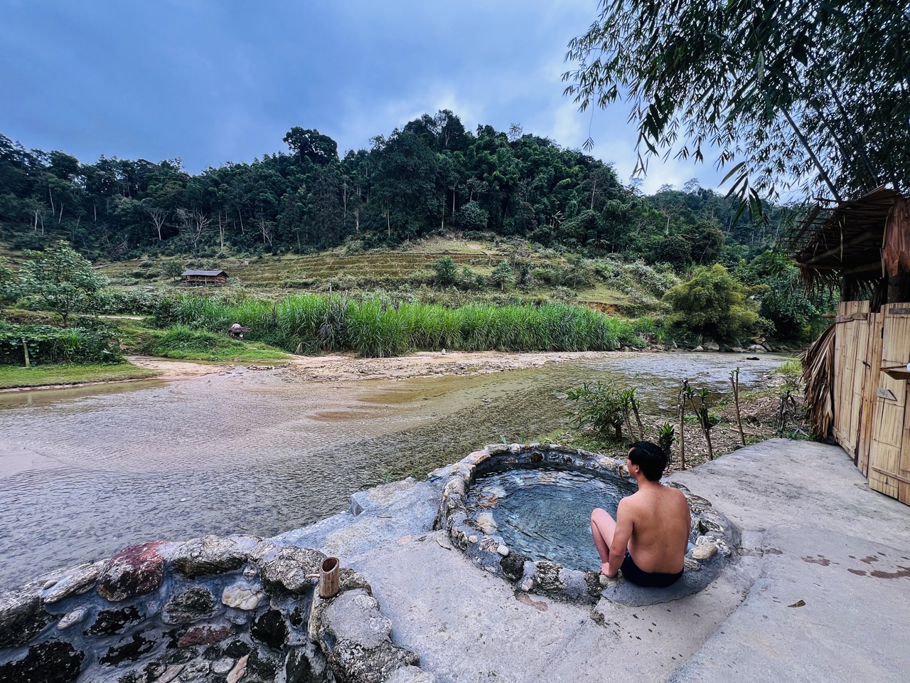 13:30 Visit Thong Nguyen village. You will pass through beautiful rice terraces, follow a nice stream along Nam Ty village. Visit Lang Giang, a peaceful village has wide rice fields, ancient stilt houses and buffaloes leisurely grazing village. You can take an Onsen bath in hot spring at Thông Nguyên town
