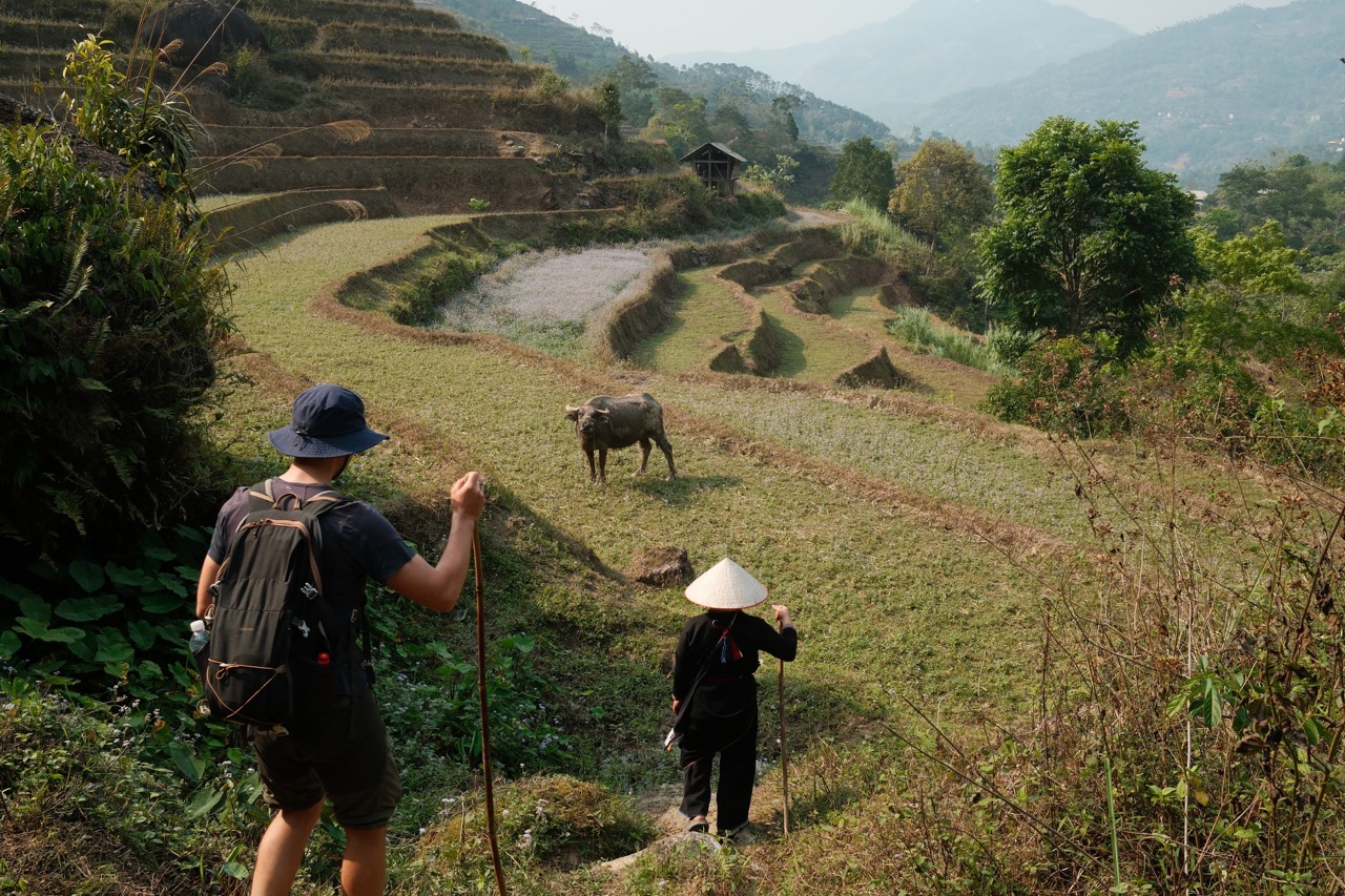 Pendant la randonnée, chaque étape révèle une nouvelle image : un buffle marchant dans l’eau, une maison en bois au bord d’une pente, un petit chemin qui traverse les rizières ou un village caché dans la vallée. Pour les amateurs de photographie, cette période est particulièrement intéressante, car les rizières reflètent la lumière, les nuages et les montagnes de manière spectaculaire.