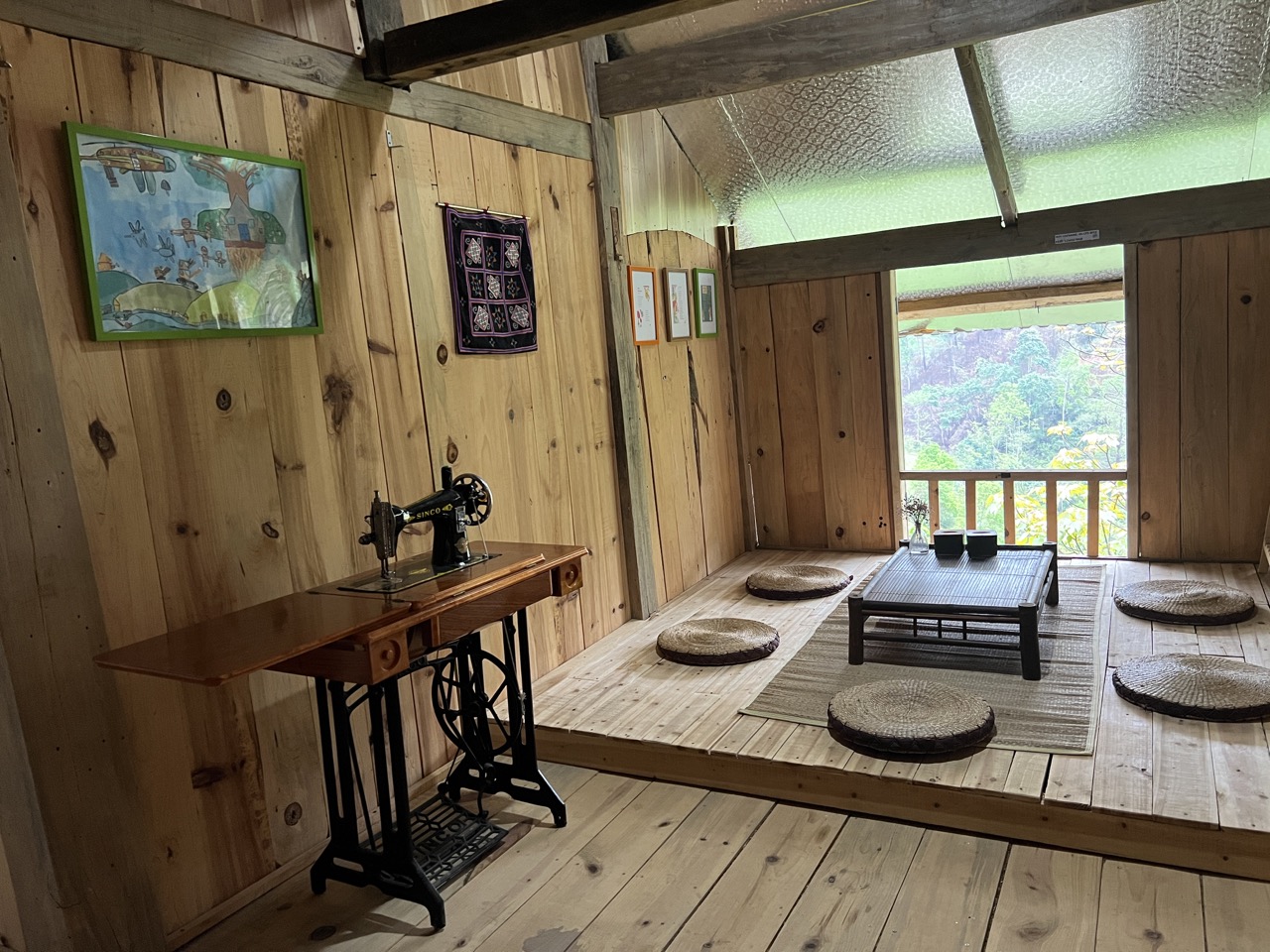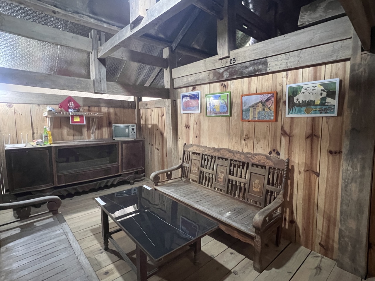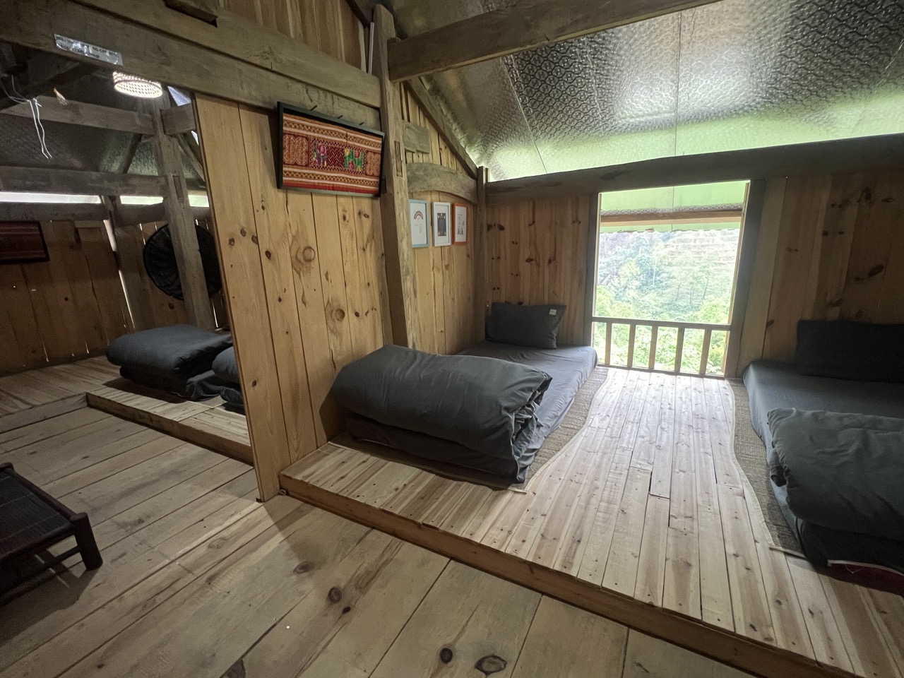 3. Chambre familiale ethnique Dao Noir : Tout le 2ᵉ étage, 2 chambres communicantes, 4 matelas, 1 salle de bain privée à l’extérieur : 650,000 VND / nuit